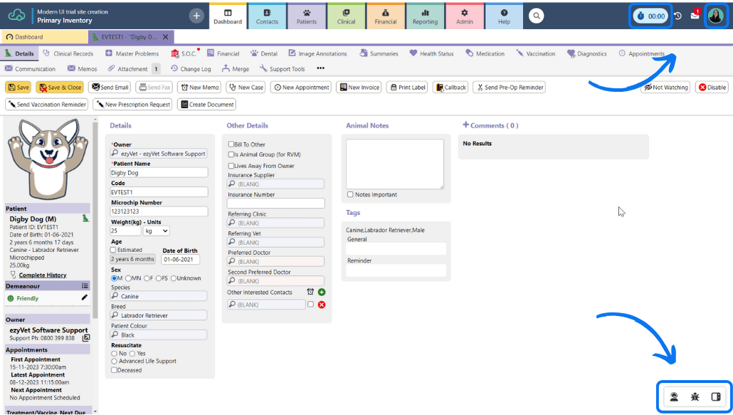 Throughout 2023, we've carefully refined ezyVet, ushering in a fresh and user-friendly interface. This reflects our ongoing commitment to modernize ezyVet and elevate your overall customer experience. We're excited that the new header experience will be available to all customers early next year, marking another milestone in our continuous efforts to enhance your user journey.