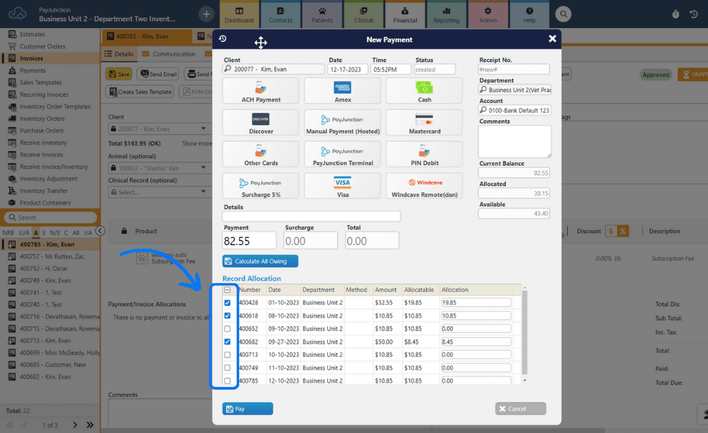 Previously, ezyVet lacked a user-friendly method for customers to select which invoices they were taking payment for. As part of our focus throughout 2023 to enhance the payment experience, we have introduced a user-friendly toggle option. Now, it's easy to select the specific invoice your customer wants to pay for, ensuring a seamless and efficient payment process.