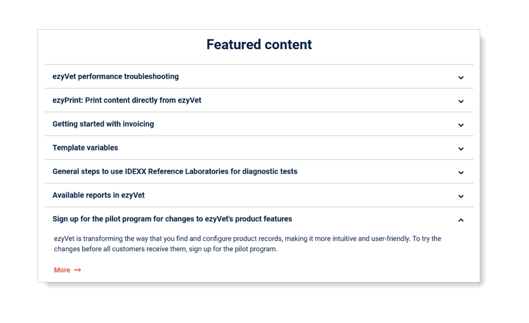 The Knowledge Center home page and other pages have dedicated sections for news and updates. It’s easier than ever to know about product changes, IDEXX events, pilot programs for new features— and much more.