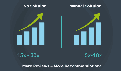 Veterinary practices that currently do not have a review generation solution in place see a 15 to 30x increase in positive reviews and recommendation when they implement Reviewtree. Where those with a manual solution in place see a 5 to 10x increase.