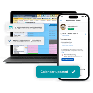Vello makes it easy Kline and her team to connect with clients thanks to automated SMS and email reminders, online scheduling, and two-way conversations that sync up seamlessly with ezyVet.